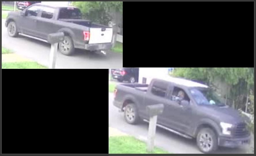 The tuck in the video is quite unique; it's a Ford F150, dark colored with a white top and white tailgate. The suspects are believed to be two white males.
